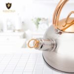 Kaisavilla 2.5L Whistling Kettle with Wooden Handle & Speckled Design for Tea Coffee Brewing Heat Resistant Ergonomic Handle Melodic Whistle