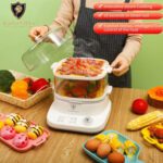 Cook seafood, vegetables and other foods without losing moisture and nutritional value. Simply turn the timer knob and operate it easily. The bell rings, indicating that the steam time has ended. Perfect for today’s health-conscious consumers!